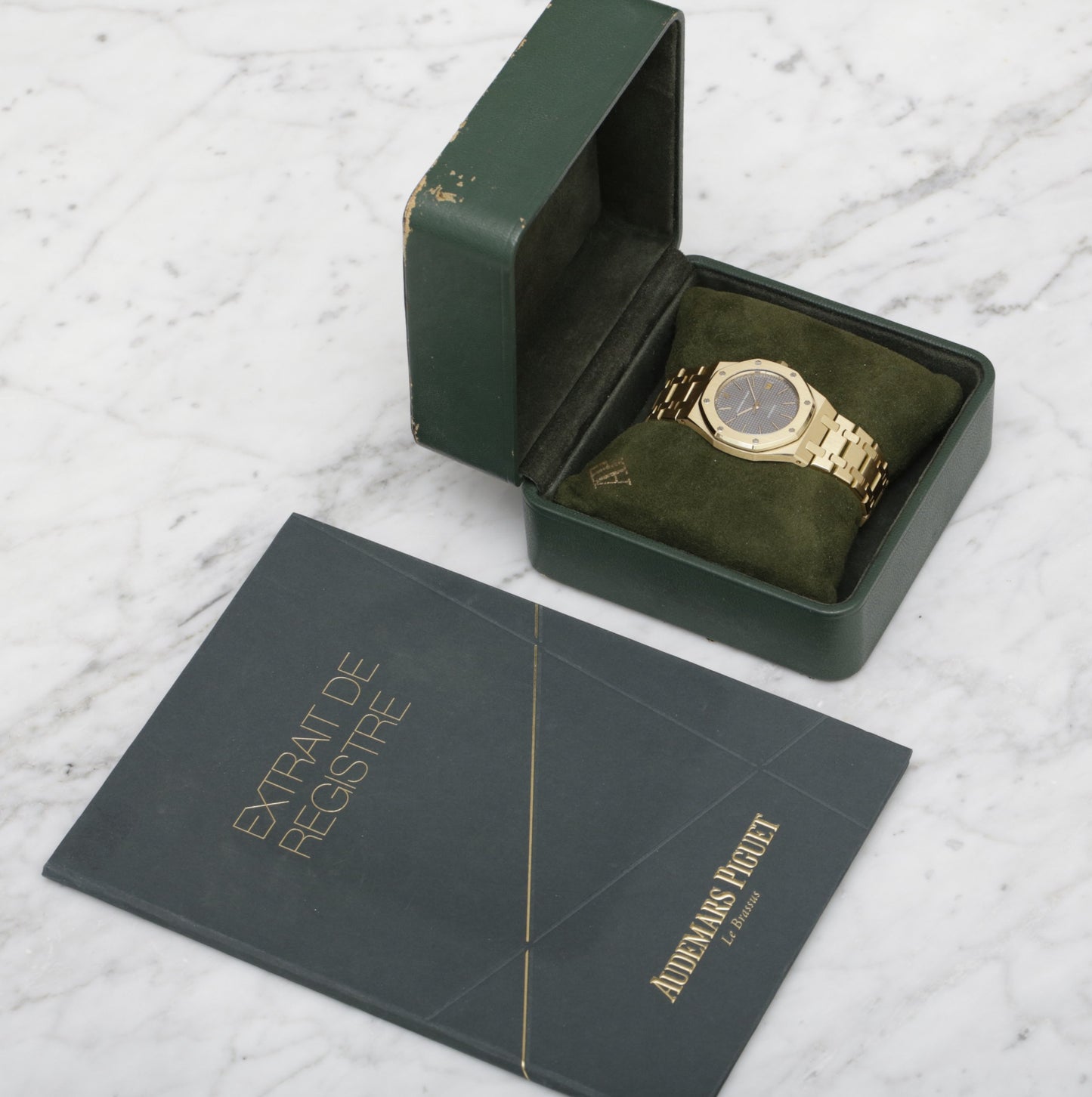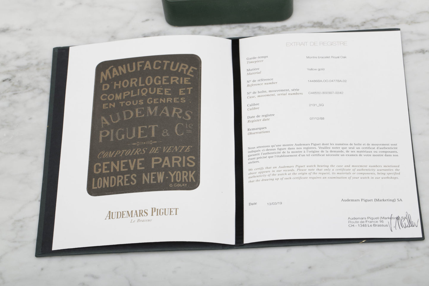 The transitional Royal Oak reference 14486 was launched in 1986 as the successor to the 4100. This reference is exceptionally rare, having been produced in limited quantities—only 1,932 units, of which 525 were in solid yellow gold.
