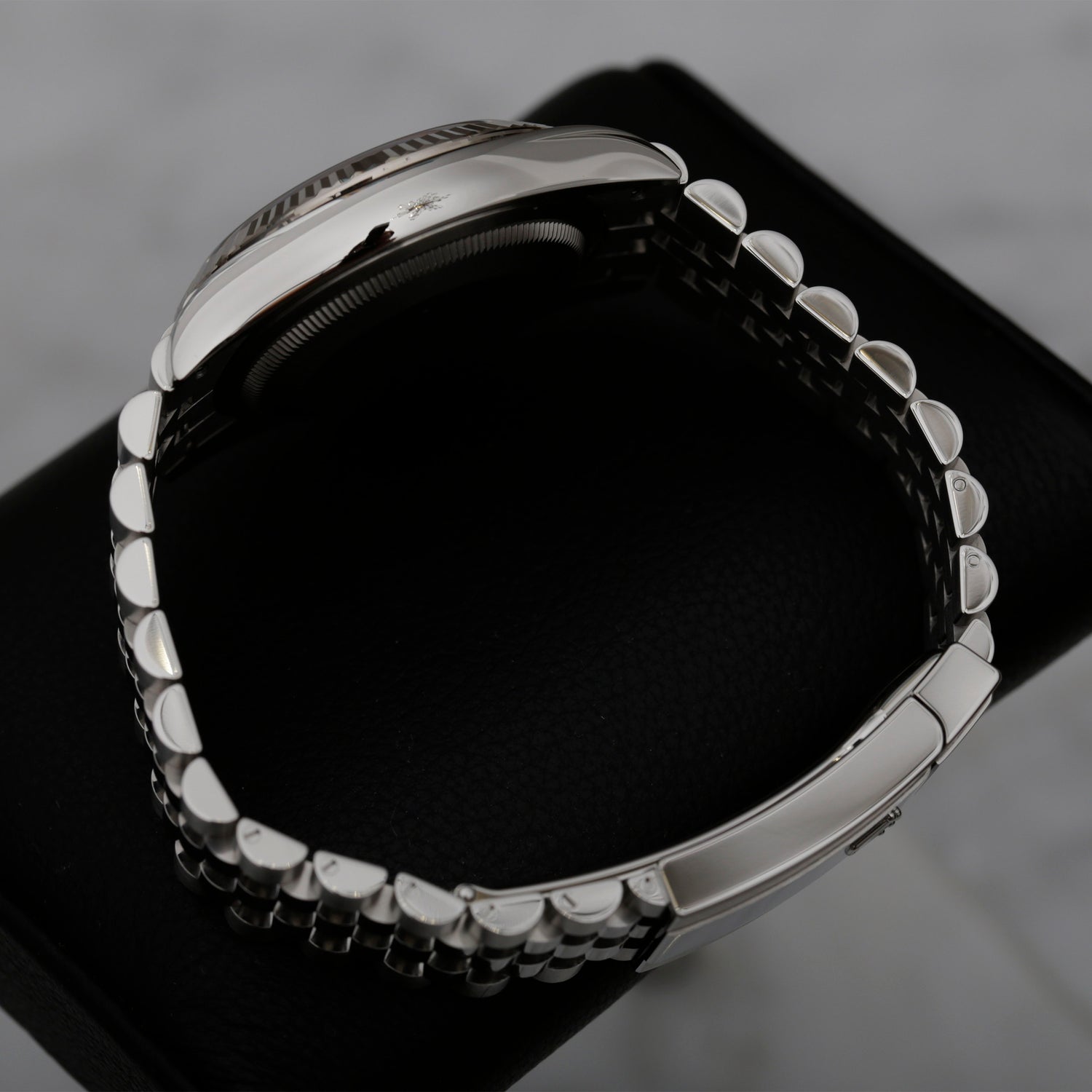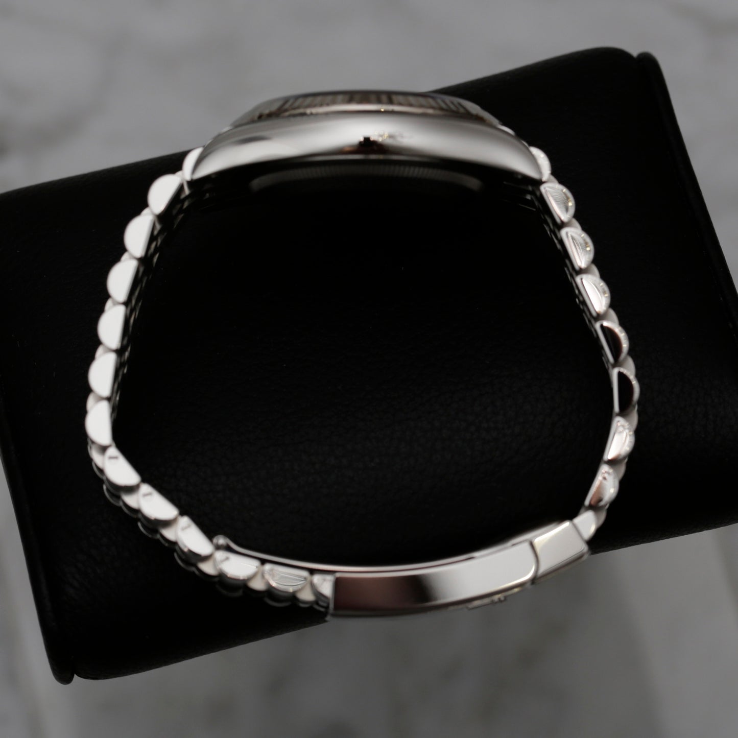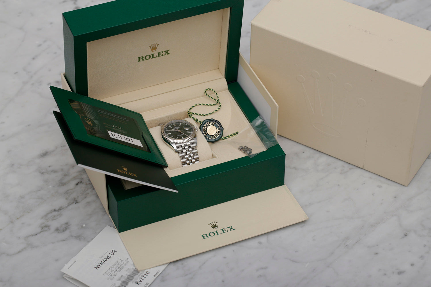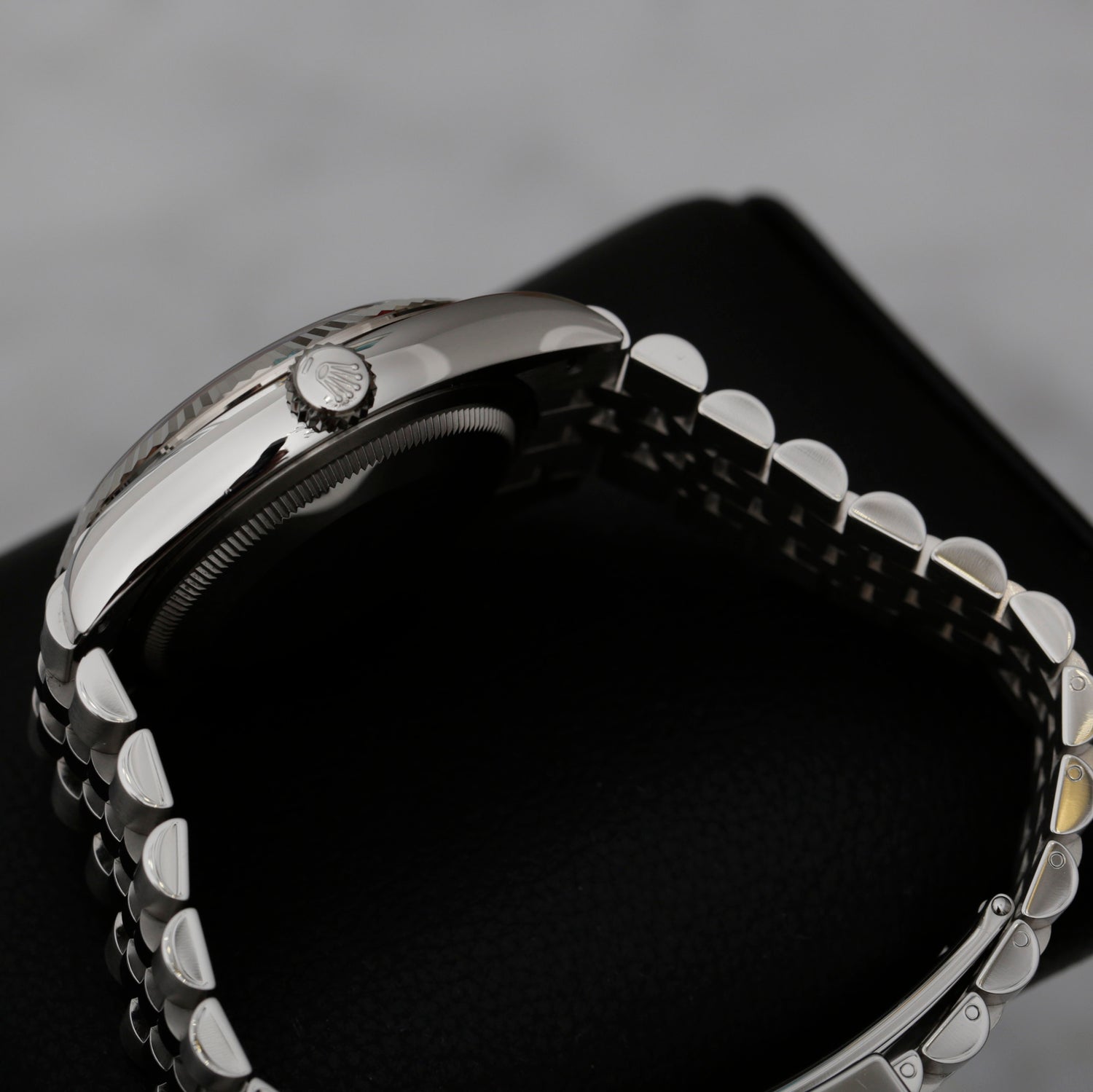 Rolex Datejust 36 with the green palm dial, in the most attractive specification with the white gold fluted bezel and jubilee bracelet. The watch is dated 25th November 2021 and is used but in absolute top condition.
