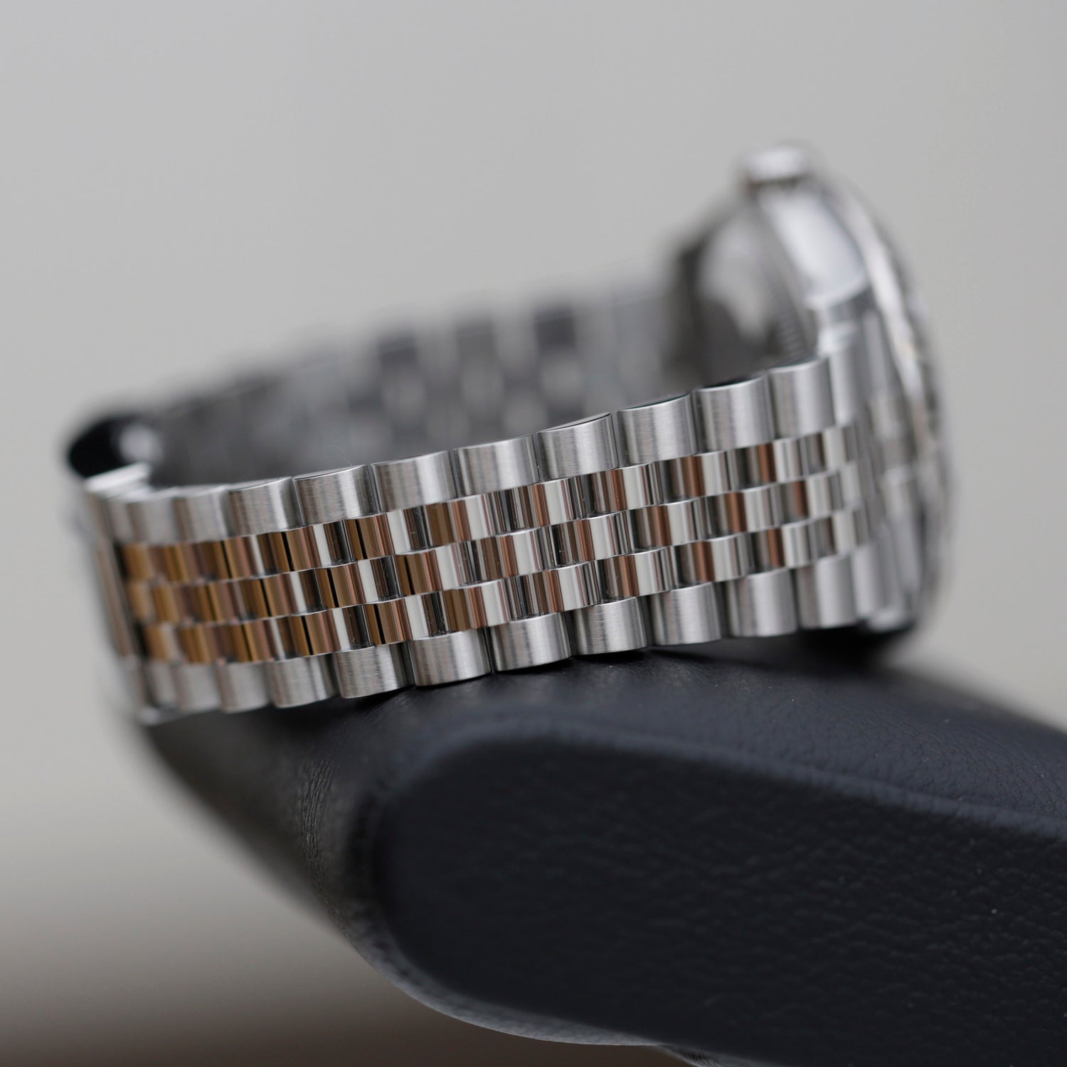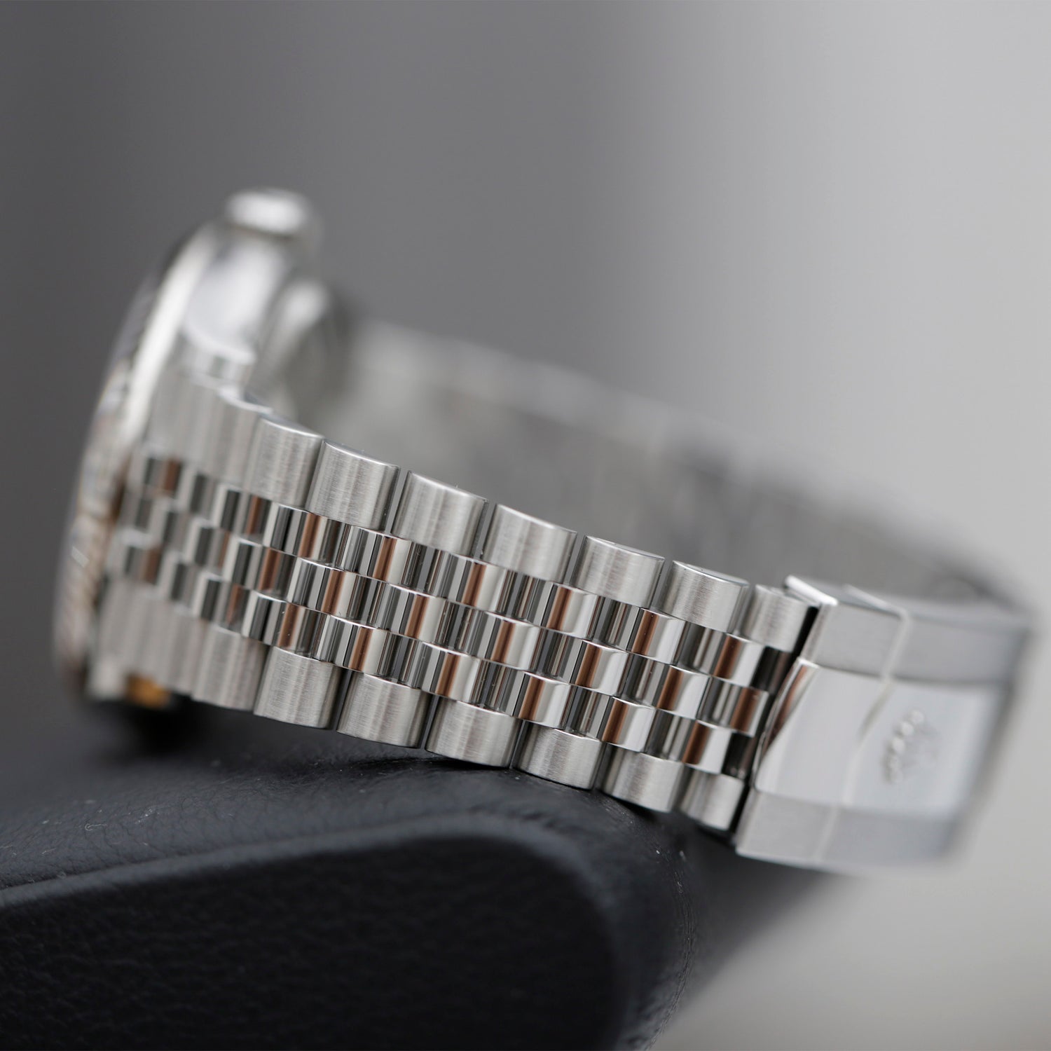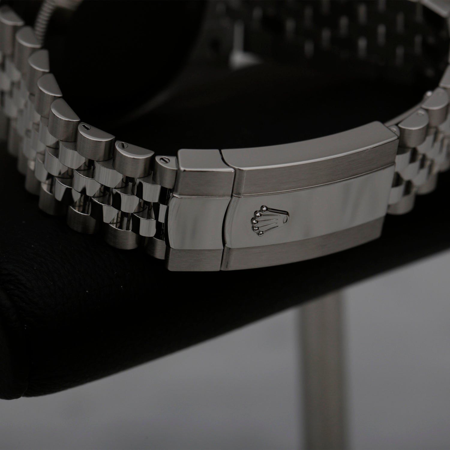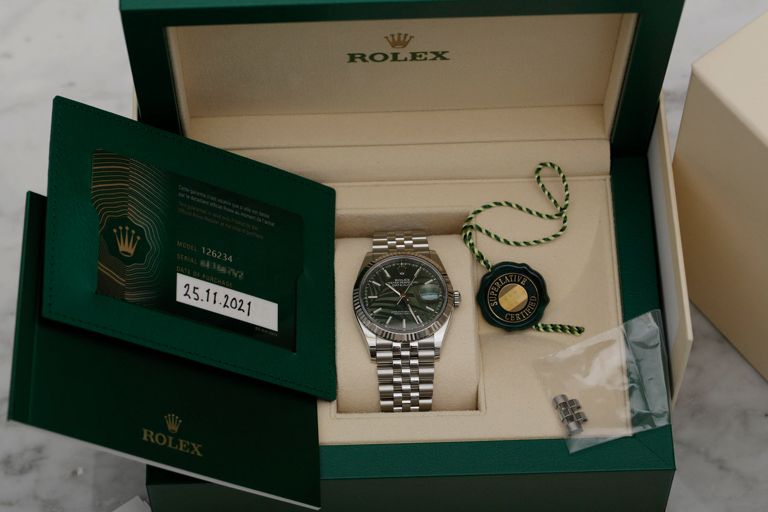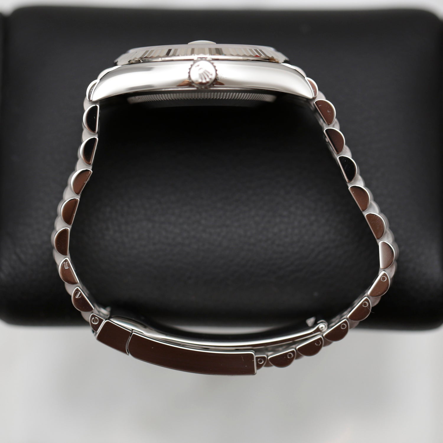 Rolex Datejust 36 with the green palm dial, in the most attractive specification with the white gold fluted bezel and jubilee bracelet. The watch is dated 25th November 2021 and is used but in absolute top condition.