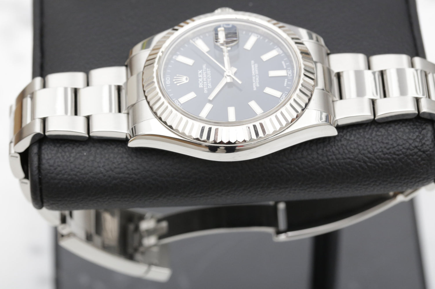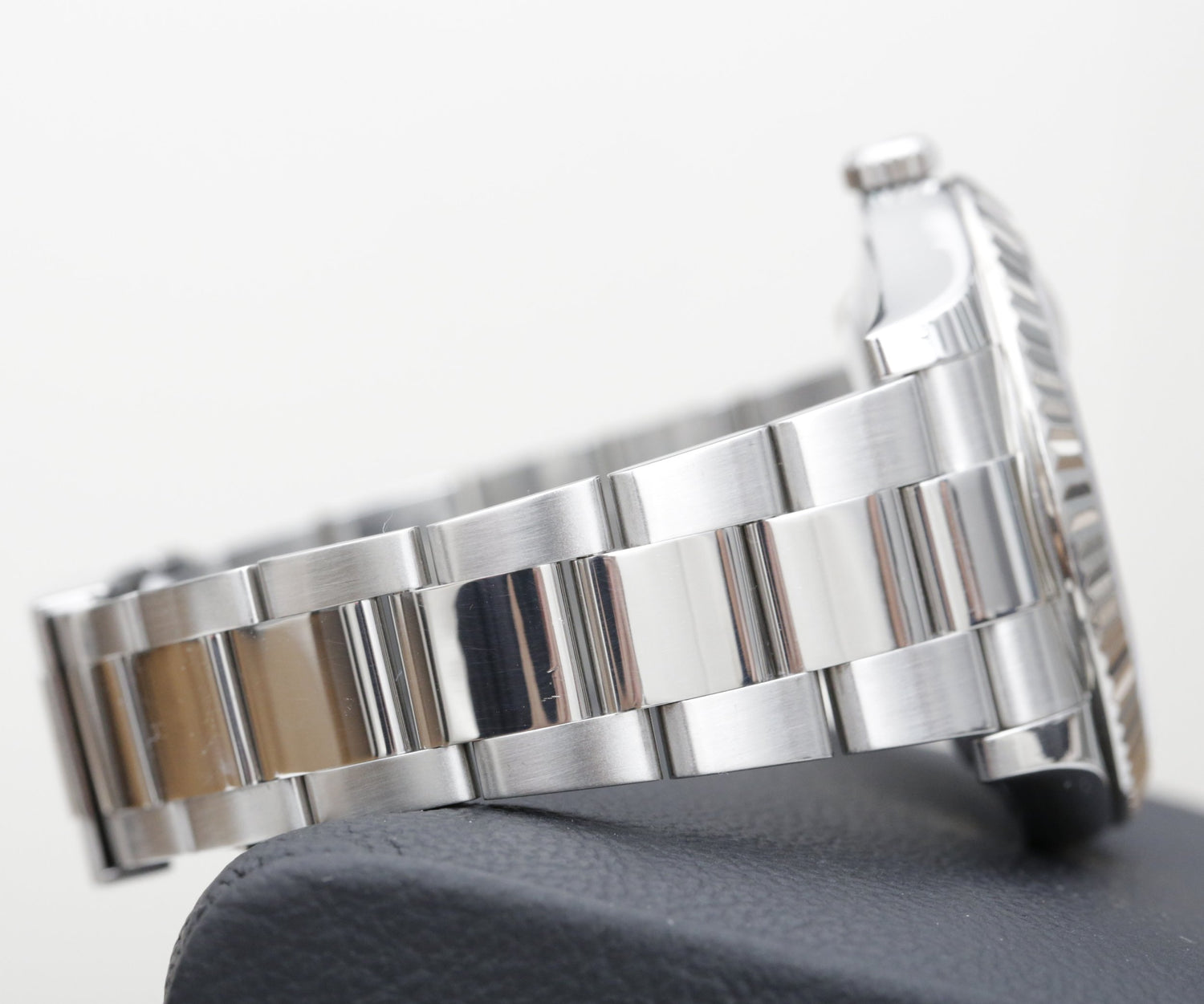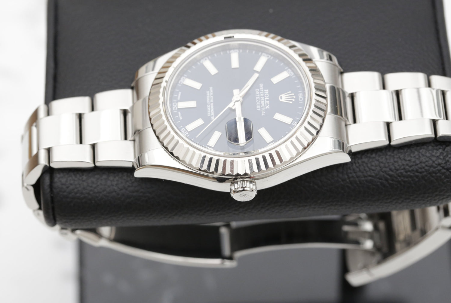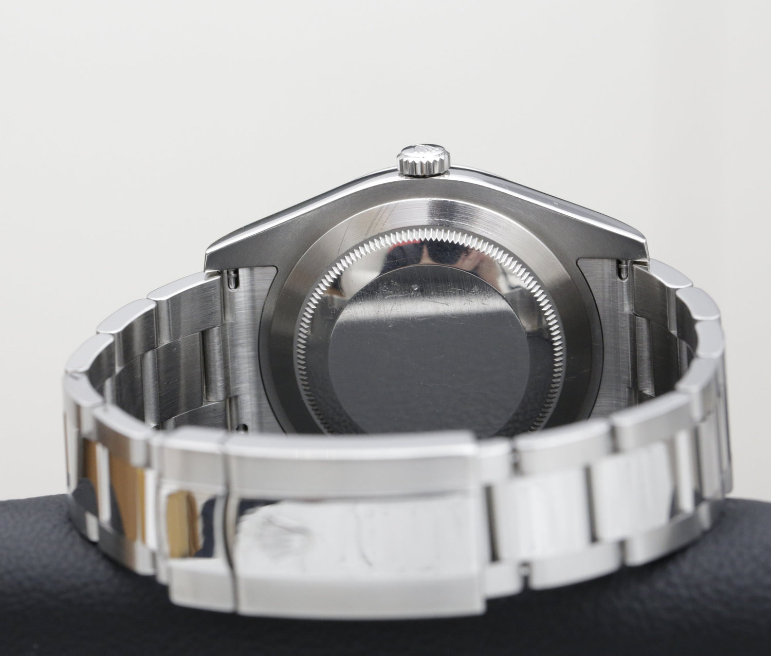 The Rolex 116334 with a blue dial with stick hour markers, and a self-winding Rolex caliber 3135 movement with a power reserve of up to 48 hours. The stainless steel Oyster bracelet complements the blue dial, making it a versatile watch for any occasion.