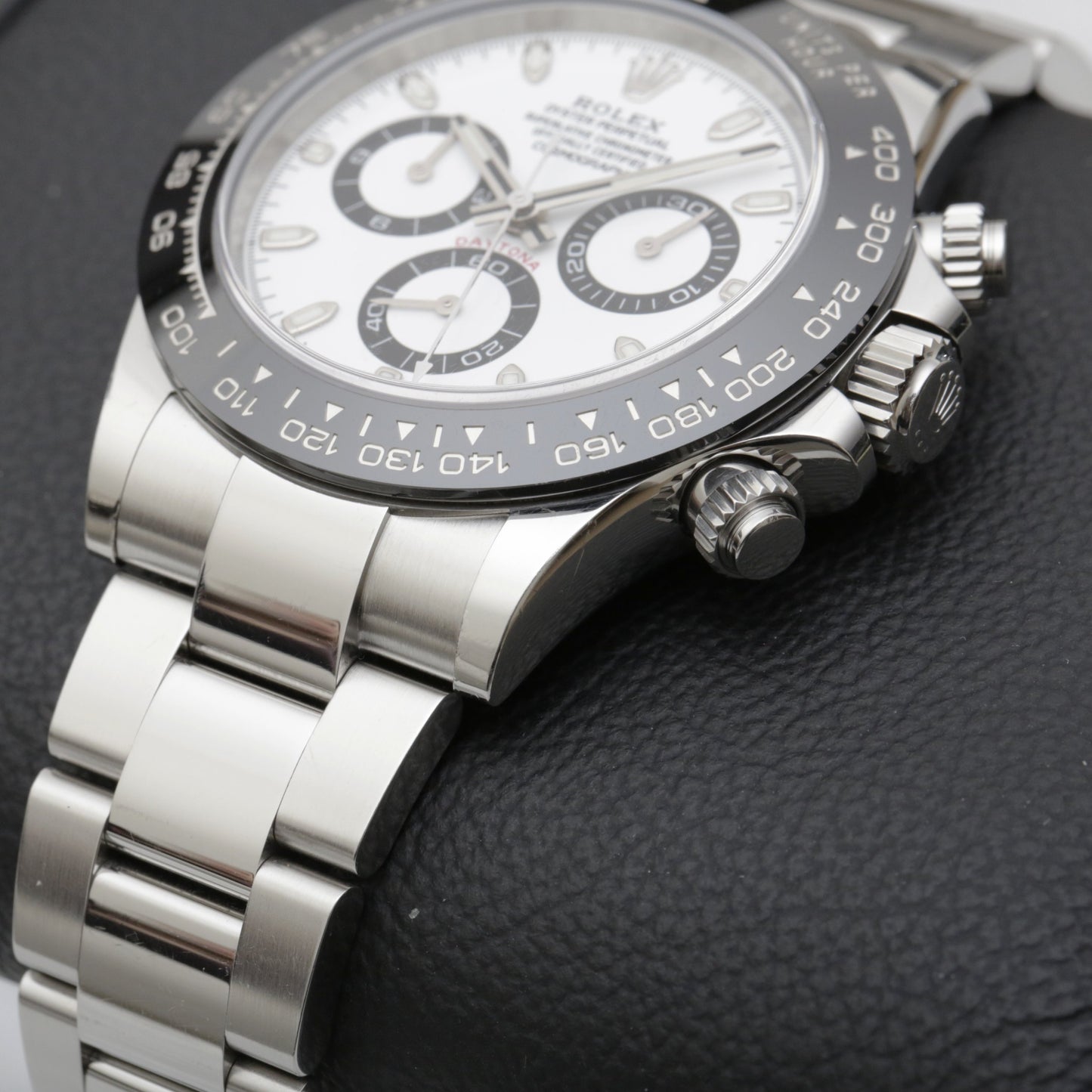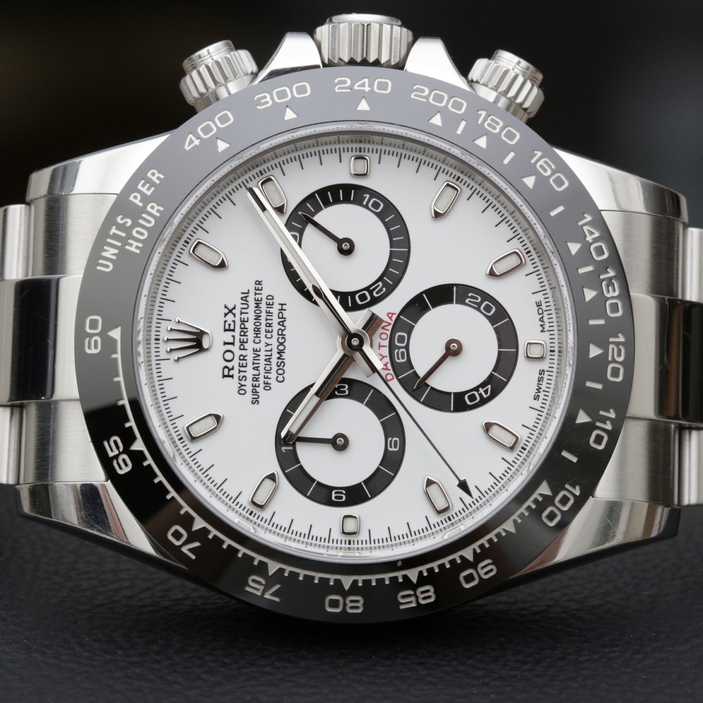 The Rolex Daytona ref. 116500, launched in 2016, stands out with its contrasted dial and iconic case shape. Replacing the ref. 116520, it introduced a ceramic bezel and updated dial to the Daytona series.