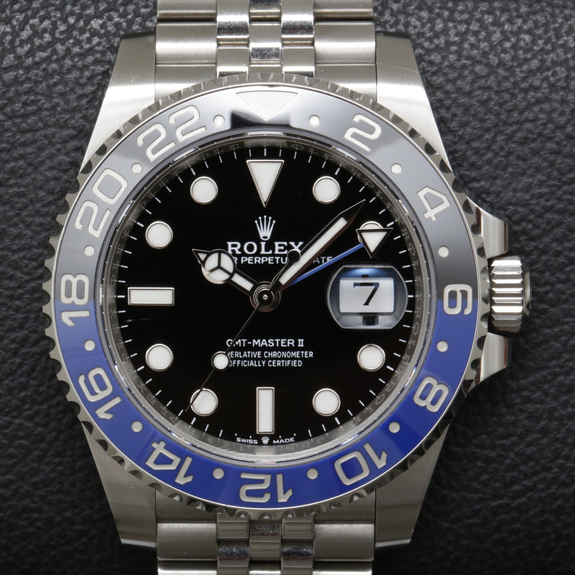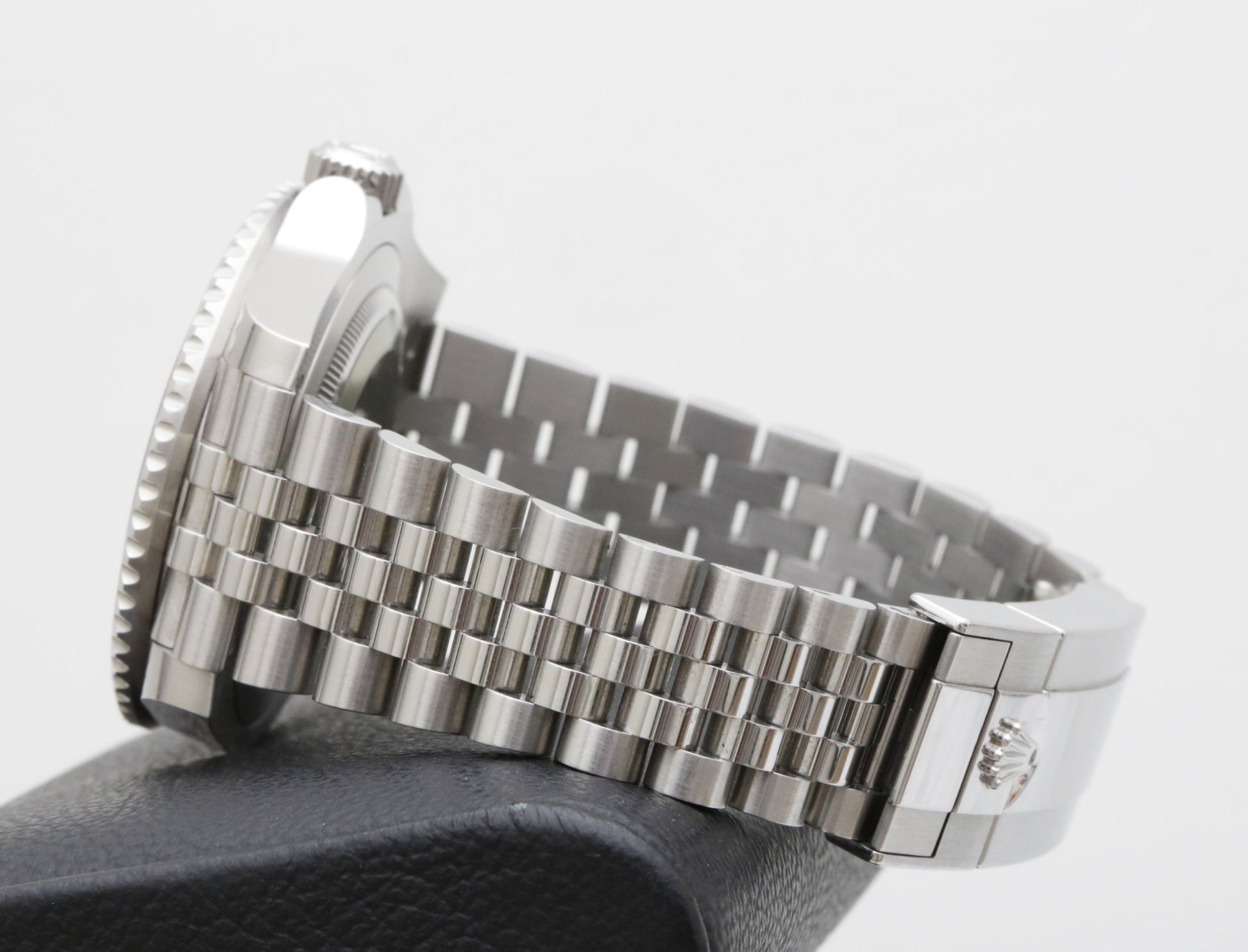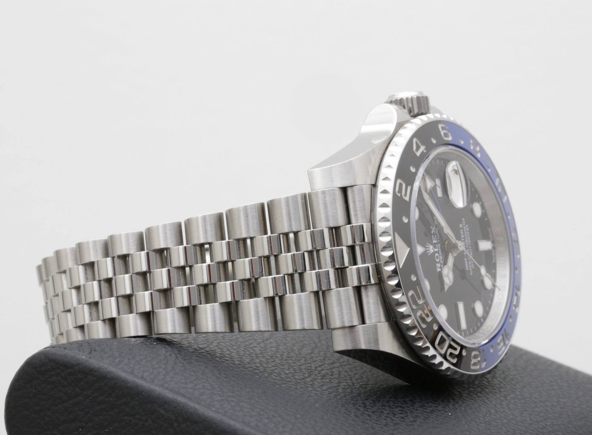 The 126710BLNR on Jubilee is the BLNR the one most collectors prefer. The Cerachrom blue black insert is all about the razor clean platinum filled numerals and the colour split that flips personality under warm light versus daylight. Gloss black dial with white gold surrounds and Chromalight gives that icy blue burn, and the Jubilee brings the comfort without losing the Oysterlock security plus a 5 mm Easylink when your wrist decides to change size for fun.