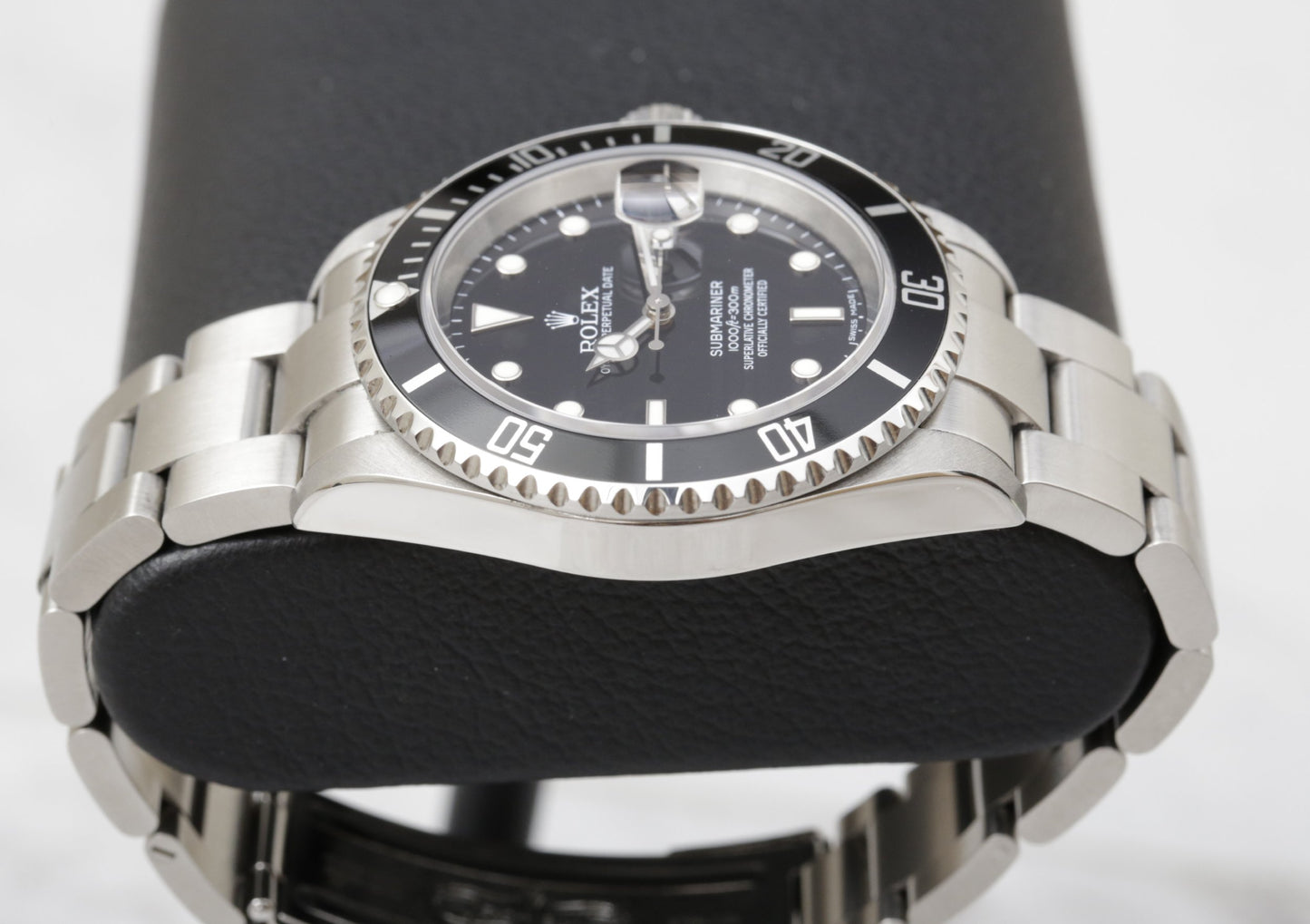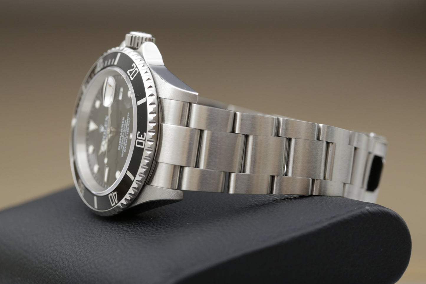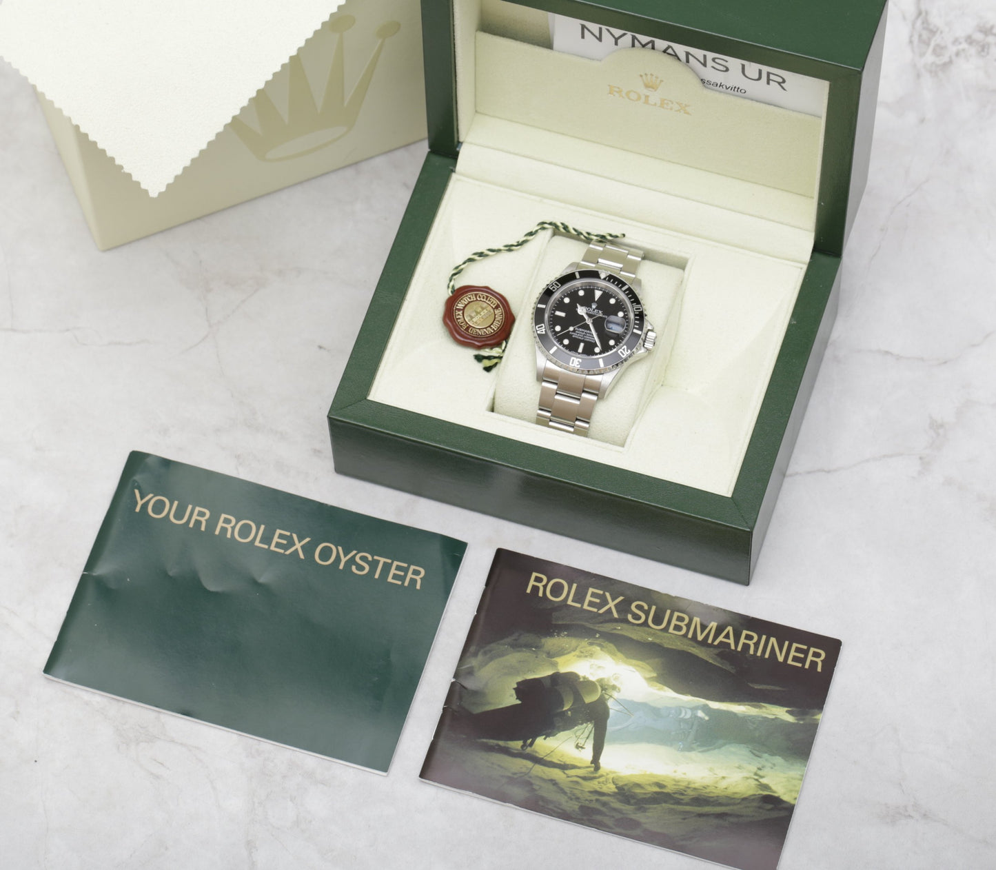 This Rolex Submariner 16610LN, D-series, from 2005, is in very good overall condition with a sharp case. The watch was serviced by a Rolex Authorised Dealer in 2022, ensuring optimal performance and longevity. It features the classic black dial and bezel, with the reliable Caliber 3135 movement inside.