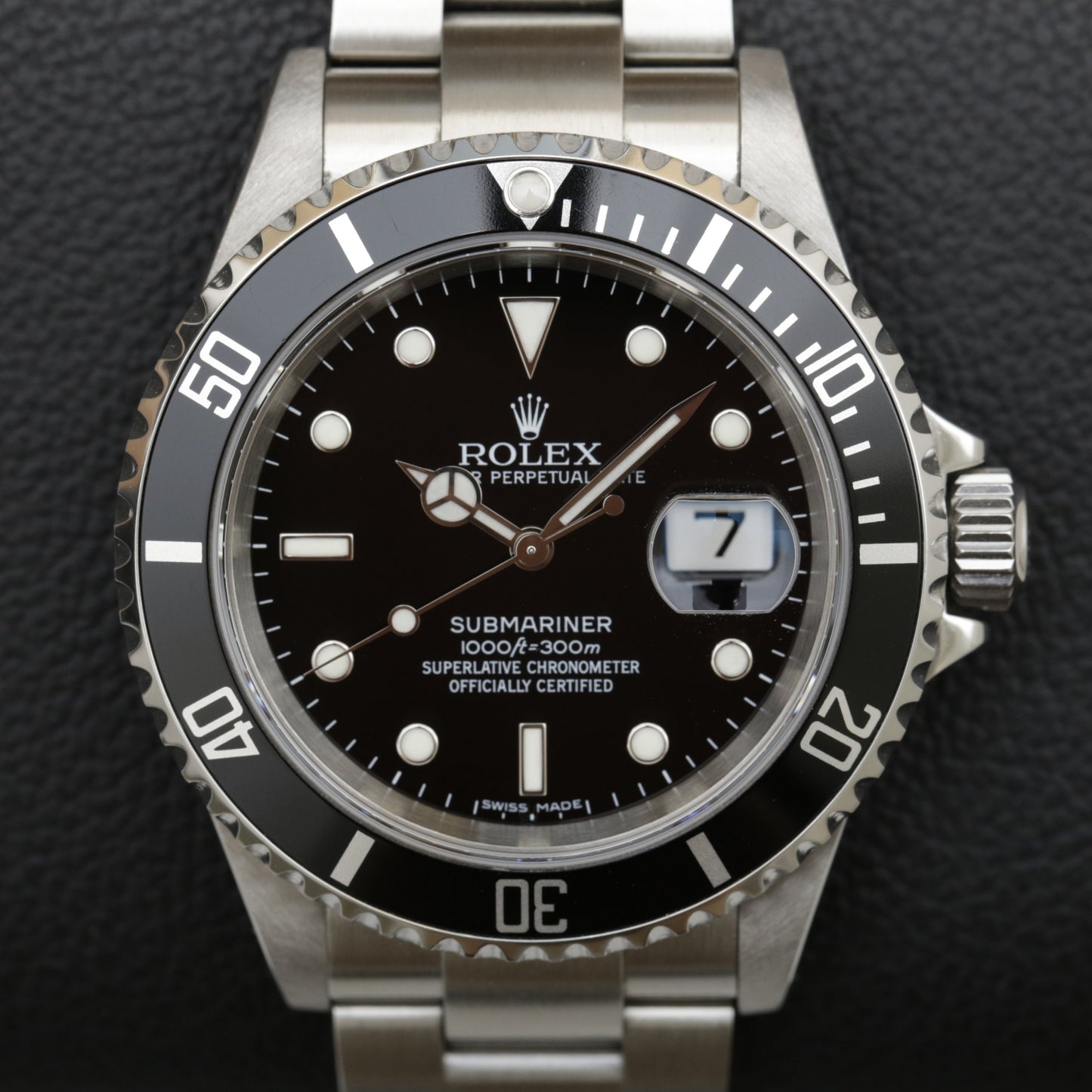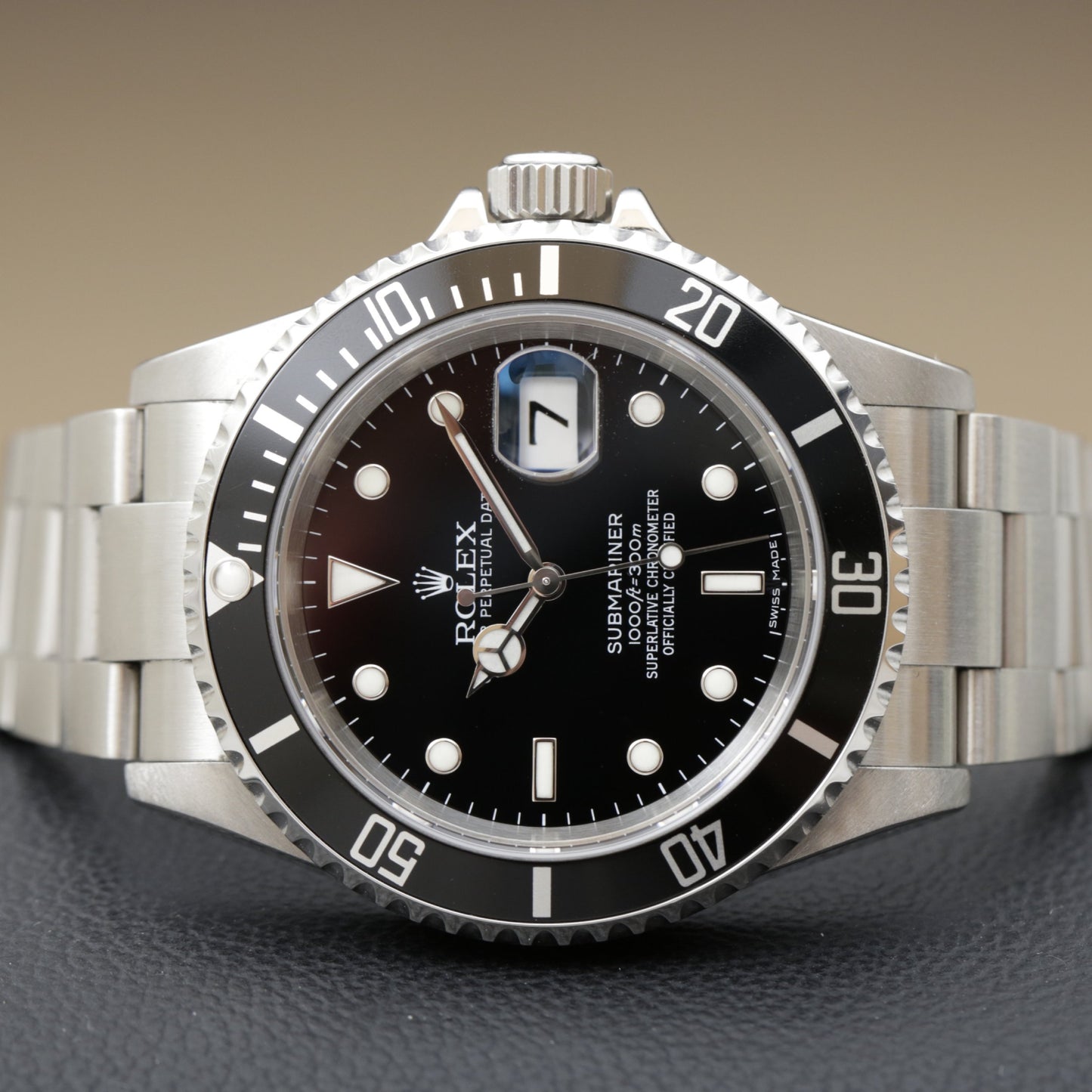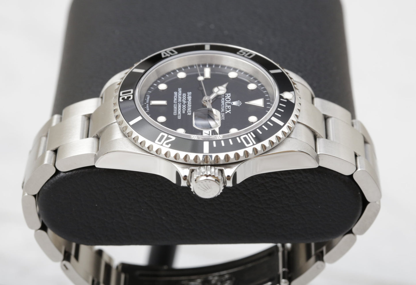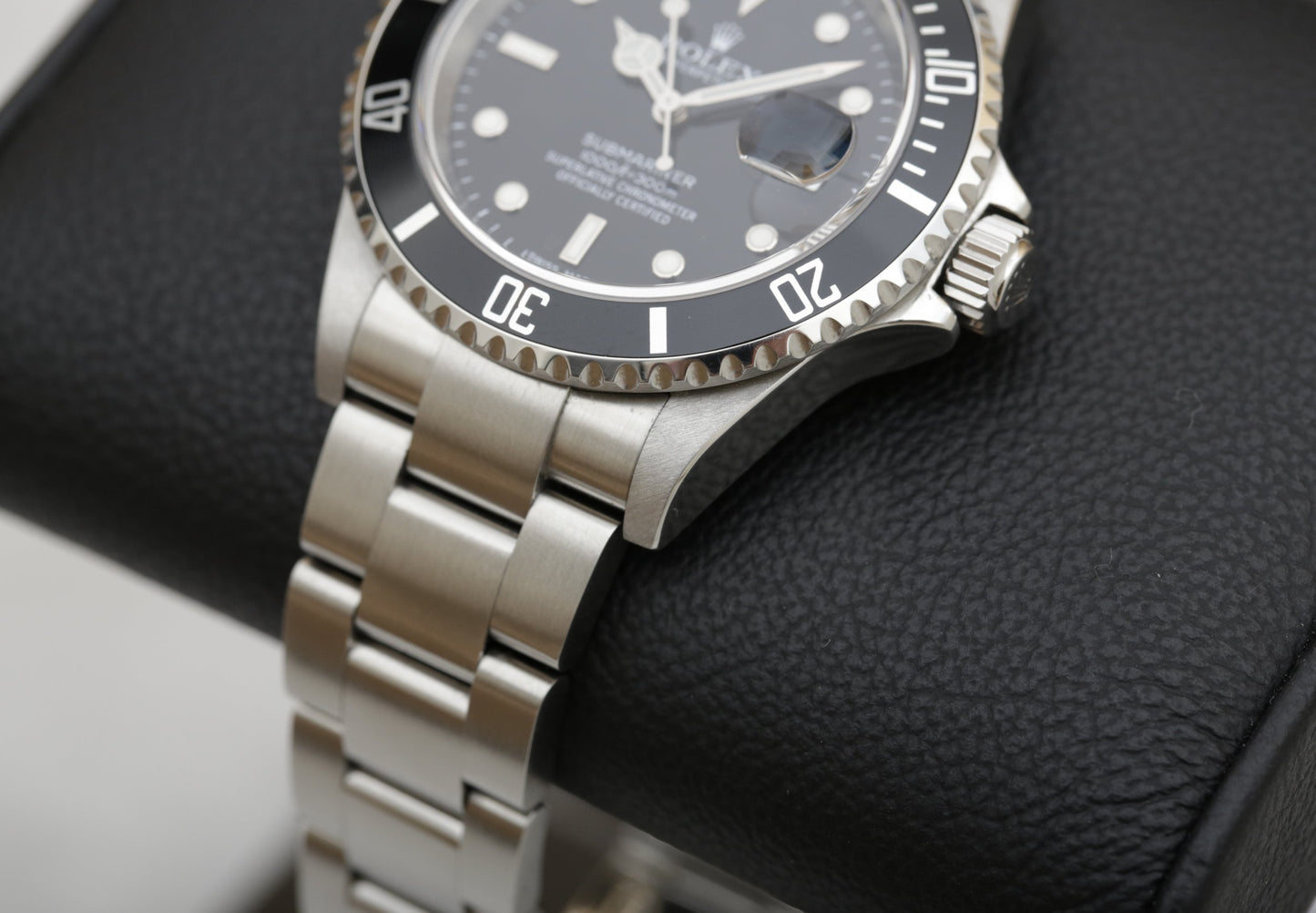 This Rolex Submariner 16610LN, D-series, from 2005, is in very good overall condition with a sharp case. The watch was serviced by a Rolex Authorised Dealer in 2022, ensuring optimal performance and longevity. It features the classic black dial and bezel, with the reliable Caliber 3135 movement inside.