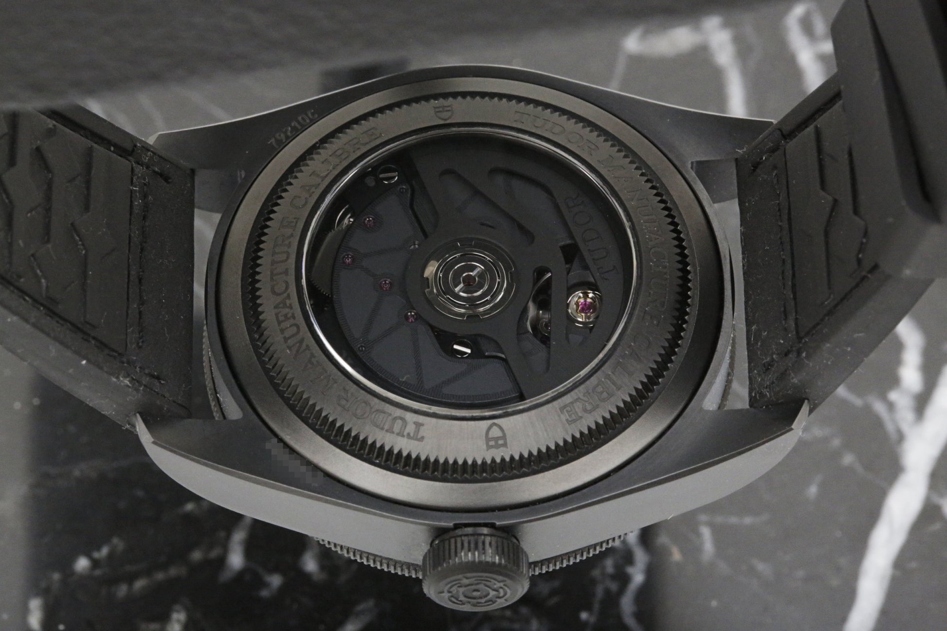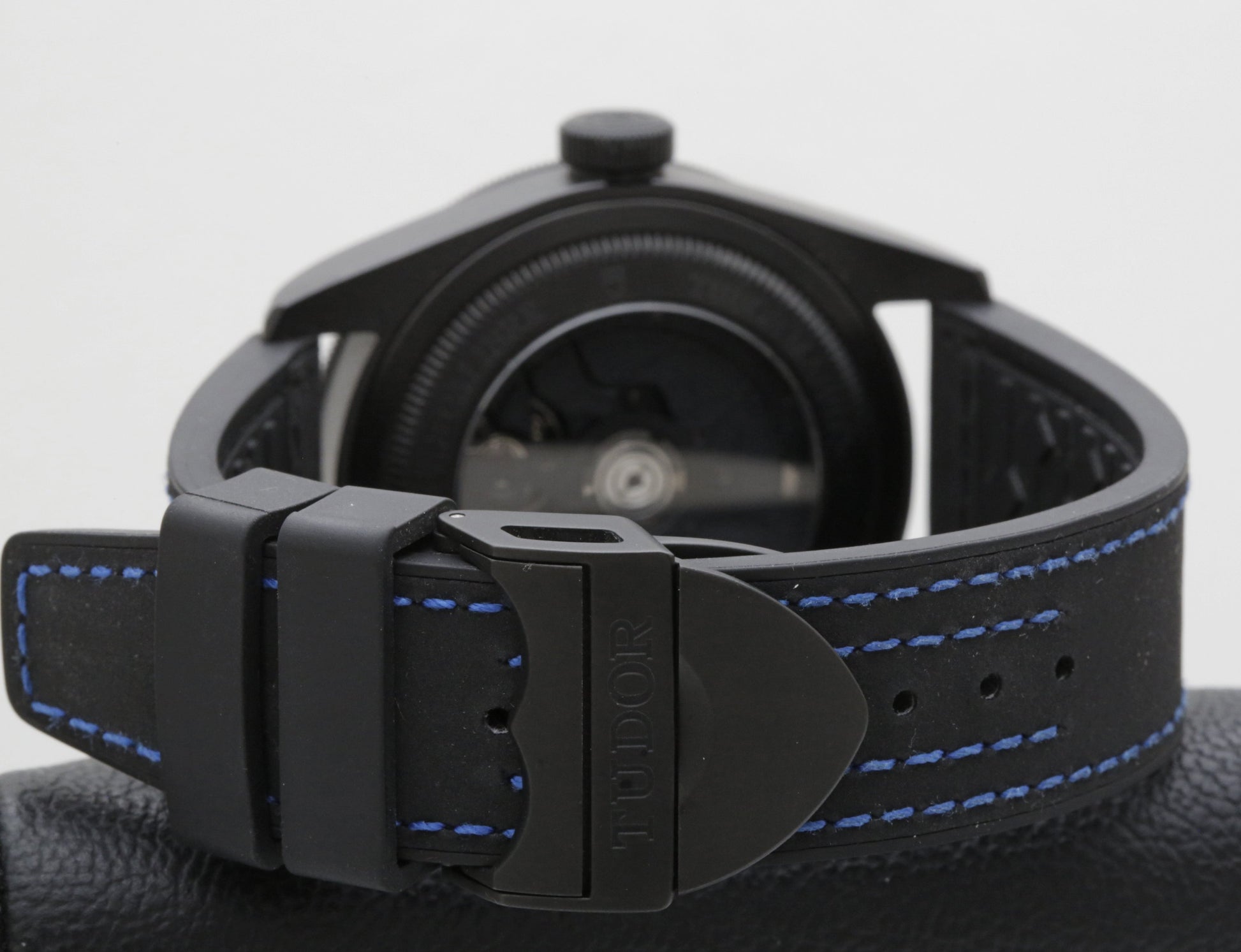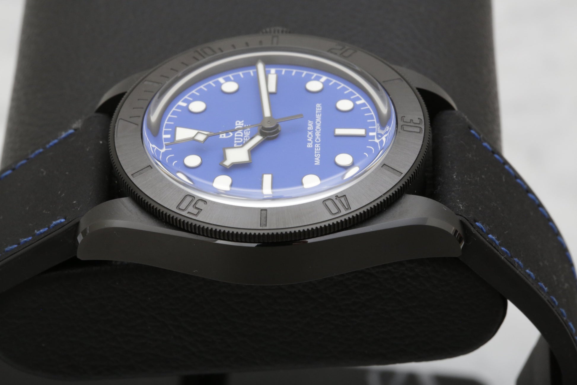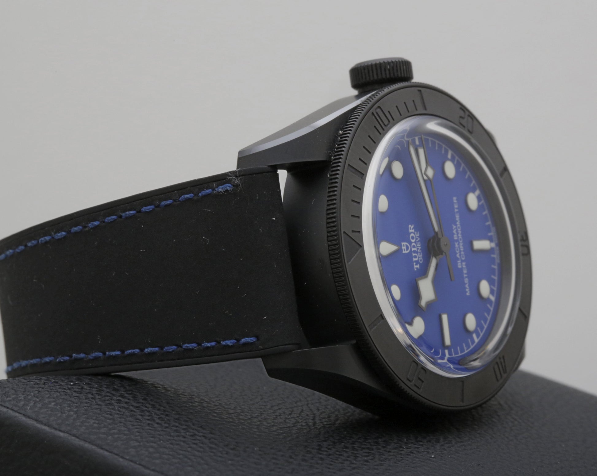 VCARB dial code, originally a paddock only team piece before the public release, and still no team branding anywhere. This M79210CNU 0007 nails the matte Visa blue domed dial with gunmetal framed plots, crisp white minute track, and pared back two line text at 6. At 41 mm wide, 50 mm lug to lug, and 14.4 mm thick, the monobloc microblasted ceramic case wears smaller than you expect, capped by an ultra domed sapphire. Check the polished chamfers on the lug flanks and the sunray satin ceramic bezel insert with an engraved, intentionally low contrast scale.